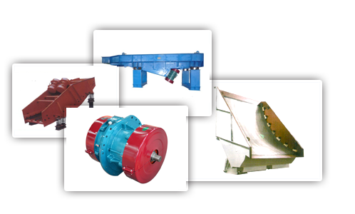 側(cè)板式激振器、直線振動(dòng)篩、圓振篩、振動(dòng)給料機(jī)、振動(dòng)料斗、振動(dòng)輸送機(jī)、振動(dòng)放礦機(jī)、帶式輸送機(jī)。
