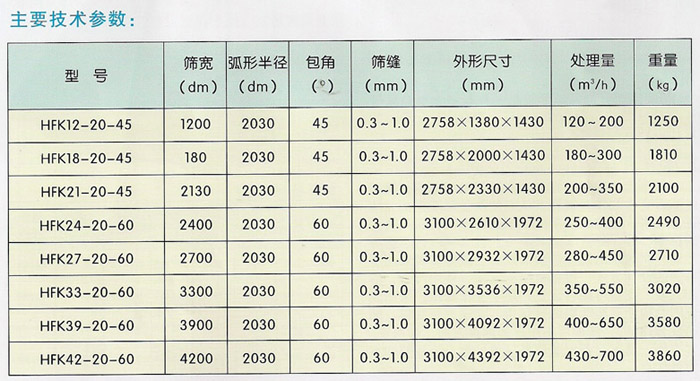 HFK型可翻轉(zhuǎn)弧形篩主要特點(diǎn):